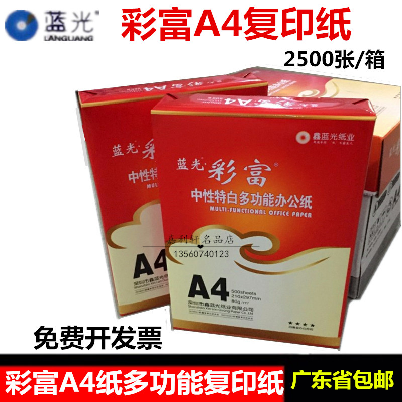 Xin blue color Caifu A4 paper impression A3 photocopy paper printing white paper 80g office A4 photocopy paper whole box 5 packaging