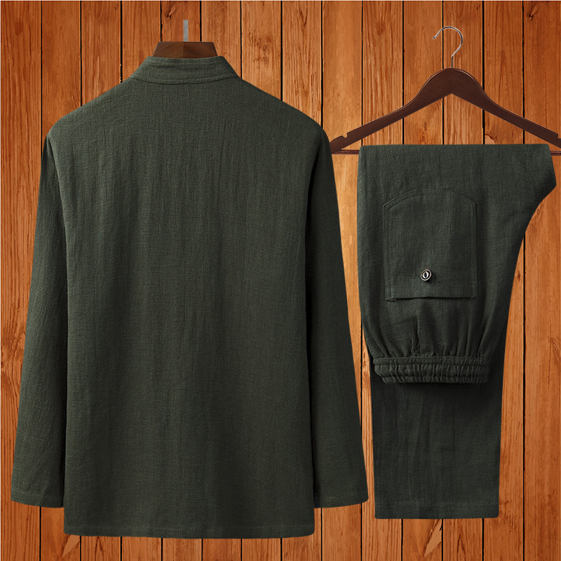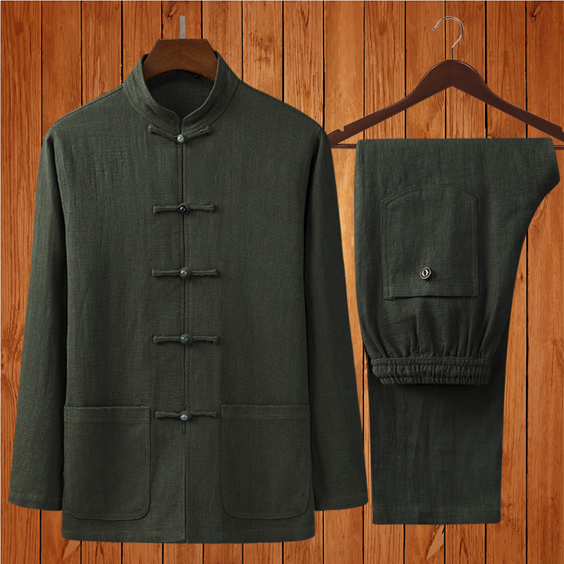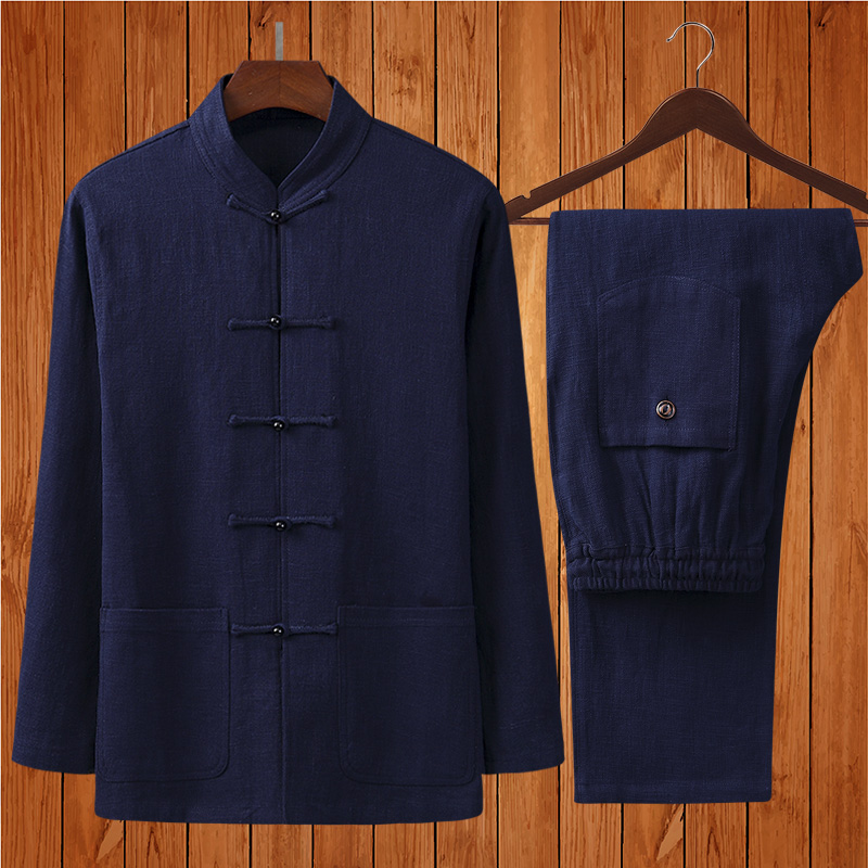 Spring Autumn Cotton Hemp Middle Aged Tang Dress Man Long Sleeve Suit Men Cotton Linen Chinese Wind Gusto Suit Man Dads Clothing