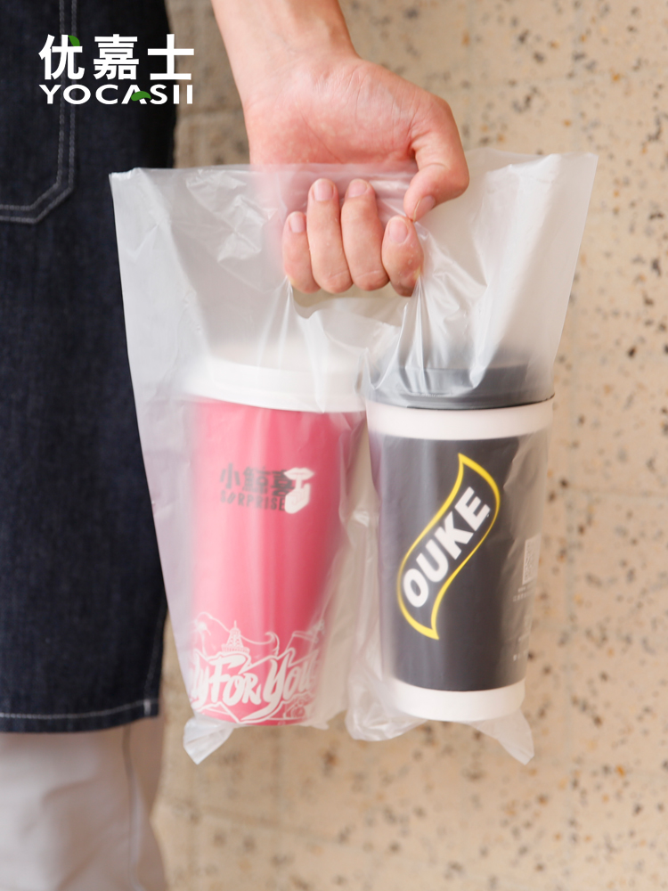 Disposable milk tea cup injection cup packaging bag delivery packaging bag transparent bag single cup bag double cup bag beverage bag