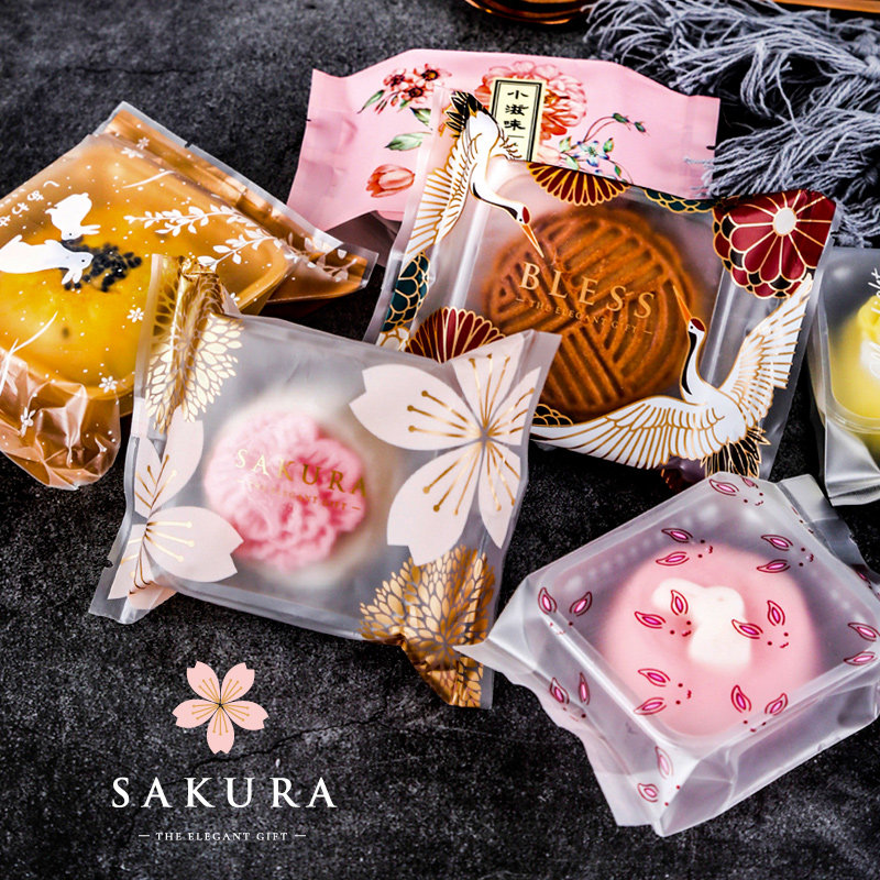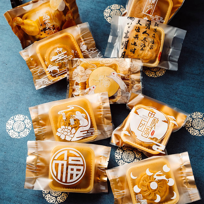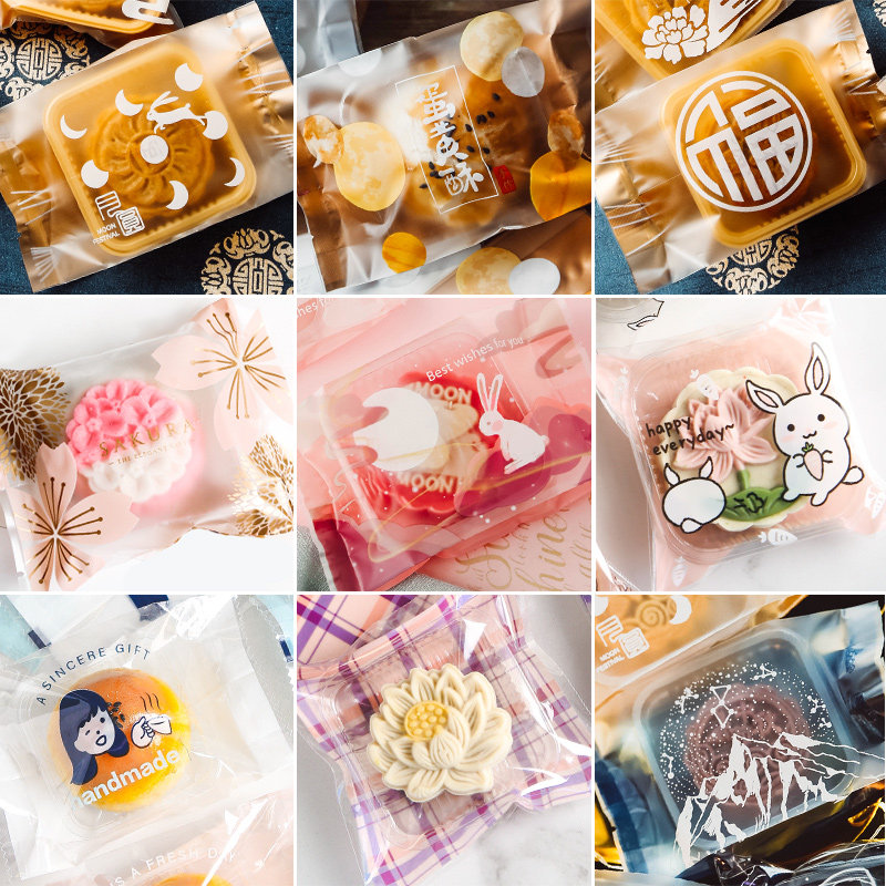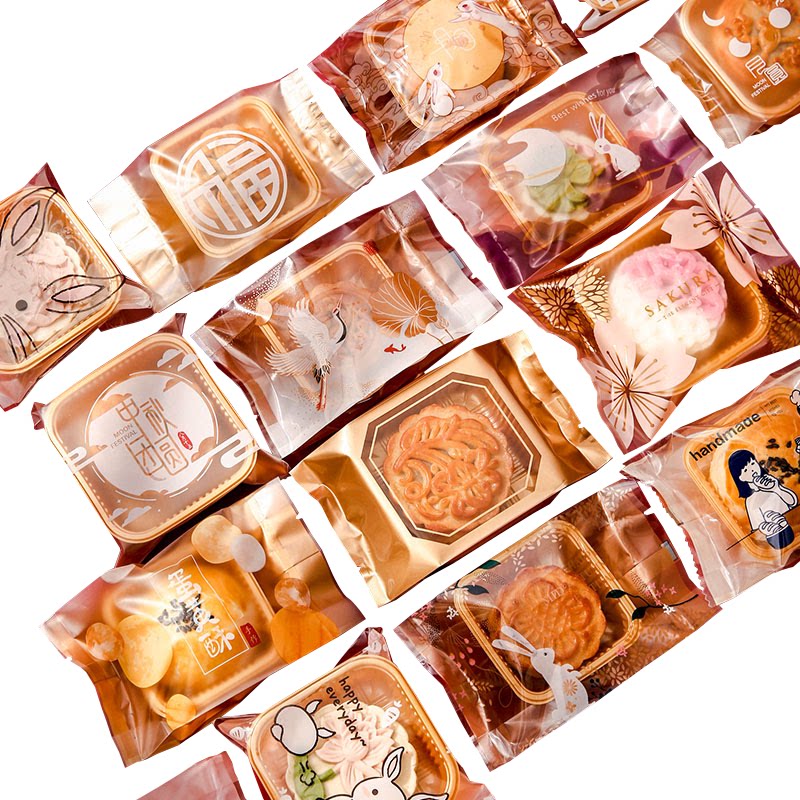 $Mooncake packaging bag Egg yolk crisp self-sealing new 2021 box bag Mid-Autumn Festival ice skin bottom bracket 50g machine-sealed bag with bracket