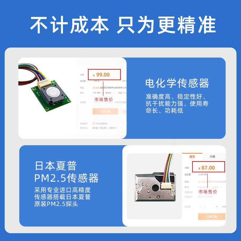 Infrared probe Japan Sharp (formaldehyde PM2 5 temperature and humidity) Laser probe tempered screen (formaldehyde PM2 5 PM10 temperature and humidity)