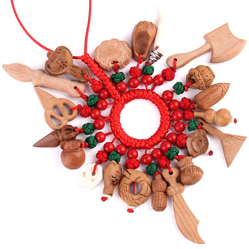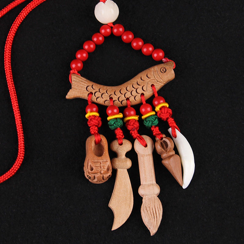 Newborn Baby Child Red Rope Pendant Peach Wood Sword Axe Knife Gourd Tiger Head Shoe Wenchang Pen Car Bag Pendant