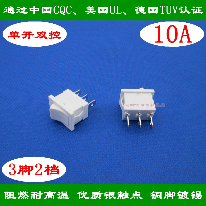 White flame retardant high temperature resistant 3 feet 2 gear rocker switch single open double cut switching power rocker switch 10A