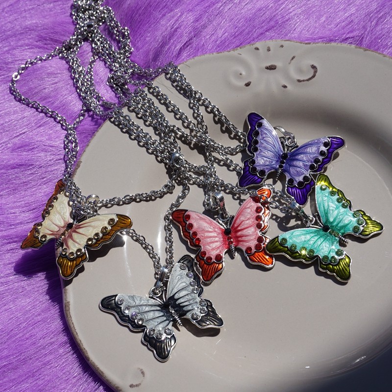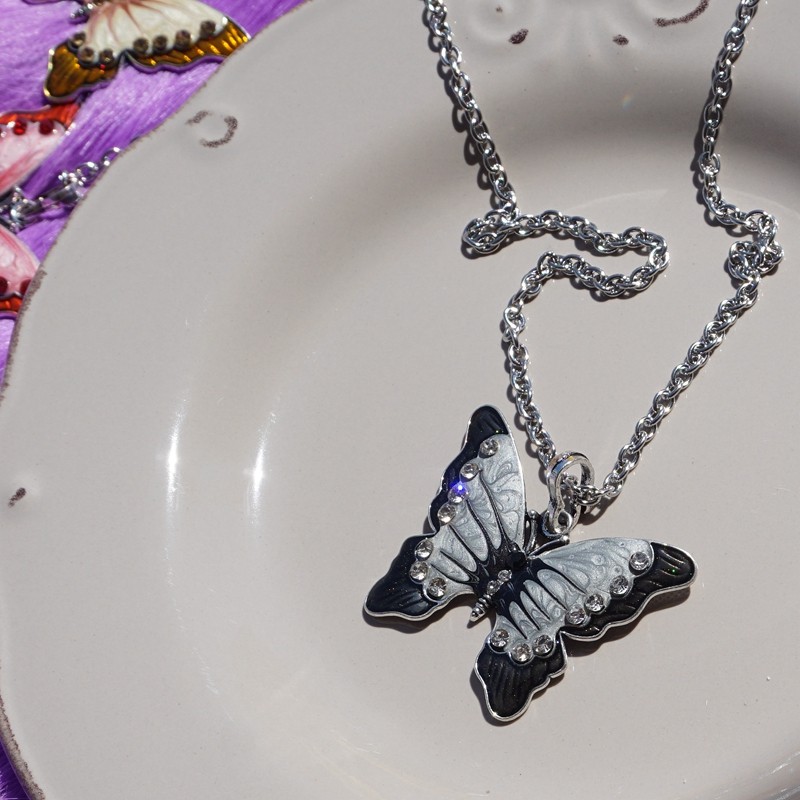 ins net red same section European and American retro 90s earth cool girl butterfly inlaid diamond pendant trampoline necklace lock bone chain woman-Taobao