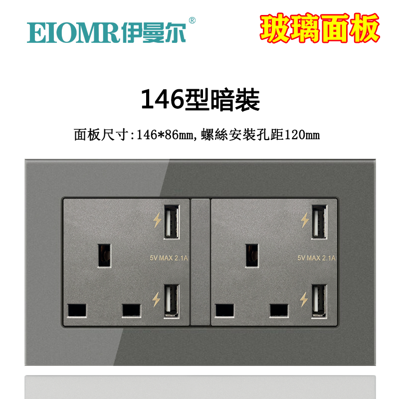 Two British 13A square foot Hong Kong socket square hole English tape with 4 double USB charging British socket 146