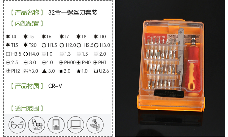 High-quality screwdriver complete set of tools household one-word cross mobile phone special combination set electric drill