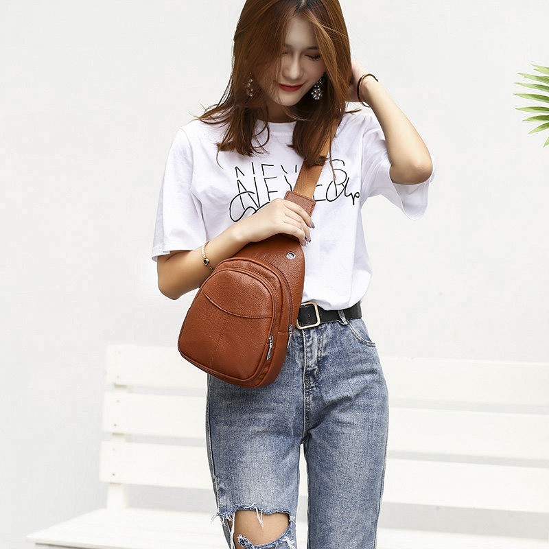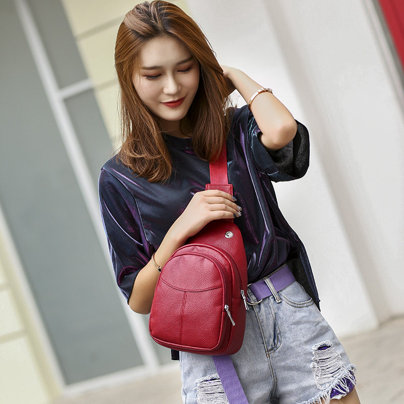 Chest bag female 2020 new Korean version of the trendy fashion all-match soft leather pu small backpack shoulder messenger bag unisex