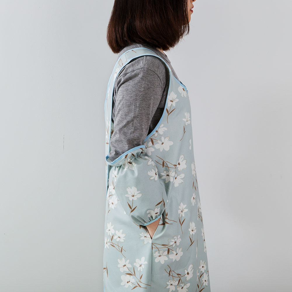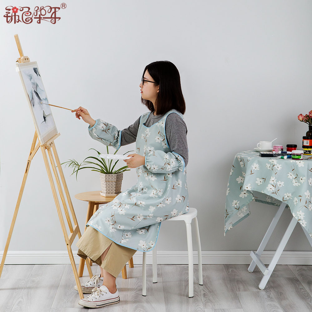 Apron Korean version Fashion fabric Kitchen Cuddling Bag Waterproof Anti-Oil Cotton Linen Fresh Cook Adult Hood Sleeves Sleeves