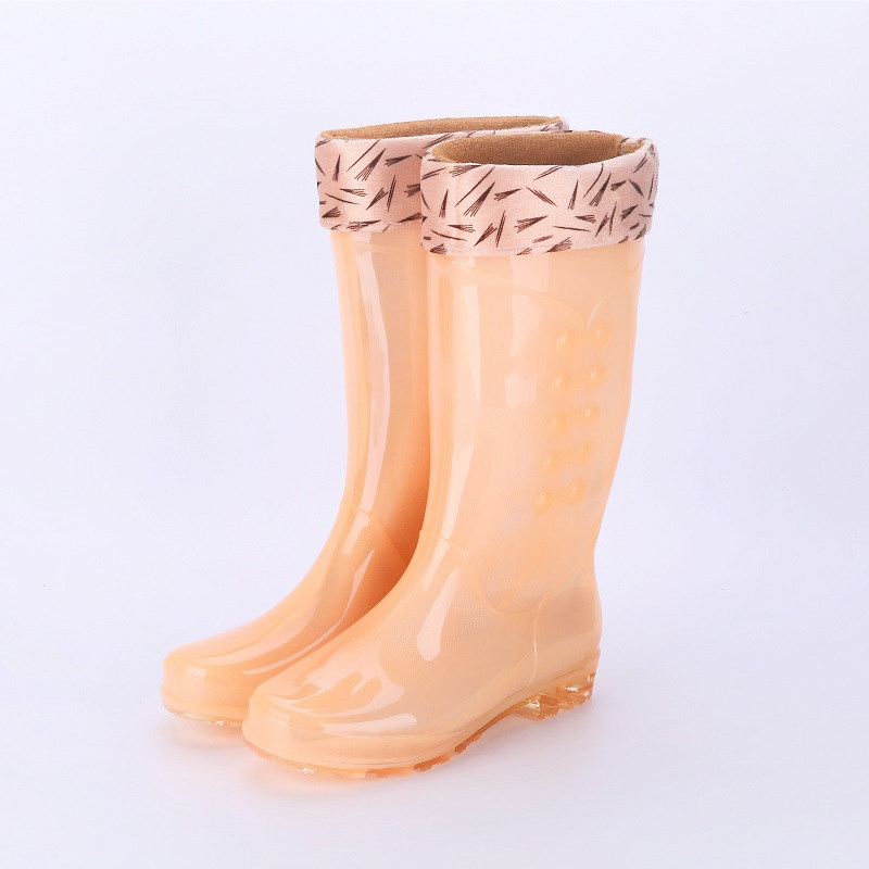Non-slip wear-resistant rain boots women's outdoor high-tube waterproof shoes adult warm rain boots female students plus velvet water boots women's high top