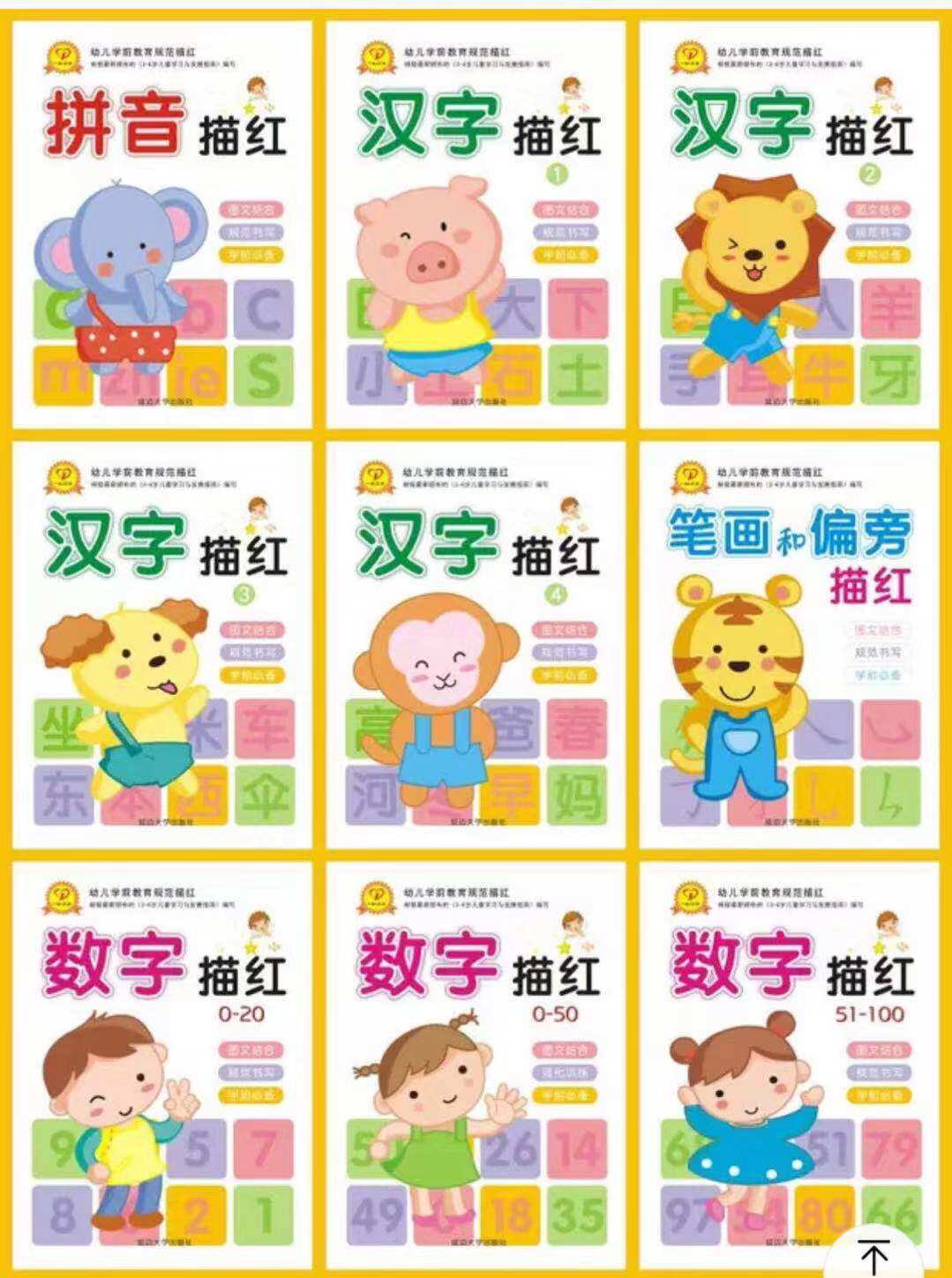 3-6 3-6-year-old pre-school pinyin Chinese character sketch red book stroke and partial-side digital practice character plus subtraction exercise book