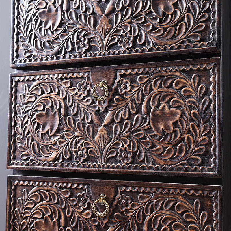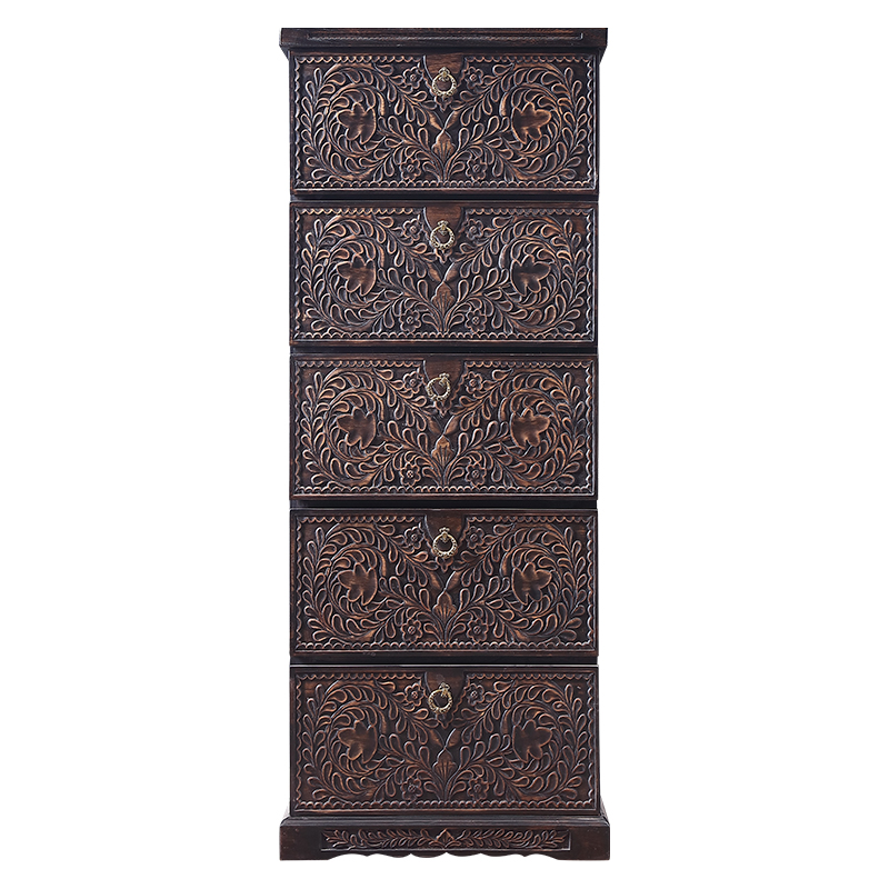 Teidomain Tae-style solid wood Carved Flowers Retro Five Bucket Cabinets Drawer Living Room Containing cabinet Southeast Asian Style furniture Furniture Closet