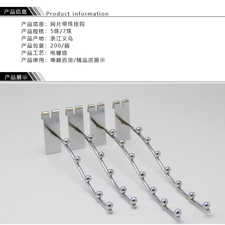 Batch supermarket mesh clothing hook Mesh with beads hook hanging mesh hook with beads hook Iron mesh hook Curved seven beads
