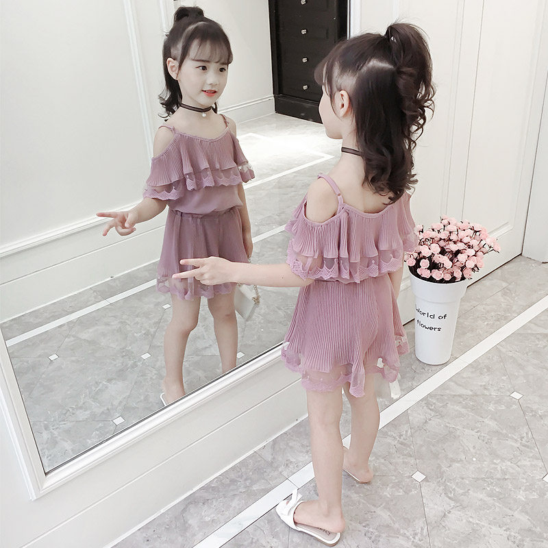 3 children suit 4 girls summer clothing 5 mesh red suit 2022 new 6 little girl foreign pie 8 sports tide clothes 9 years old