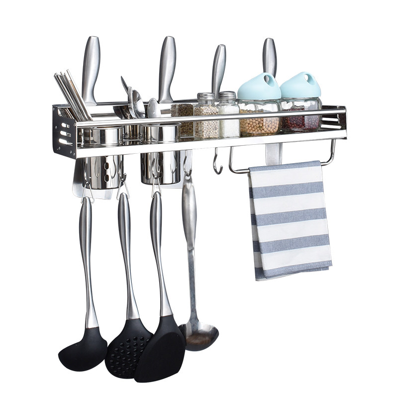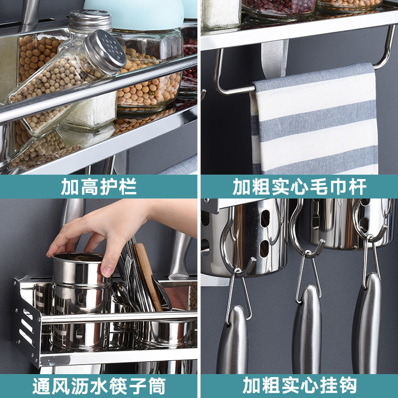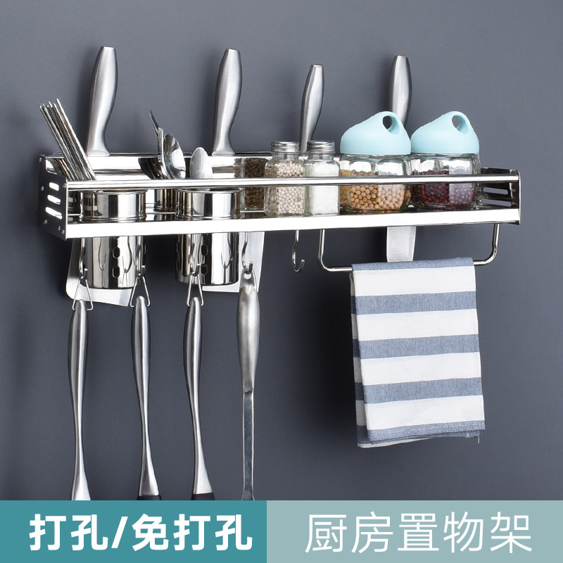 Stainless steel kitchen shelf Wall-mounted punch-free storage knife holder Multi-layer seasoning tank rack Spatula rack Kitchenware supplies