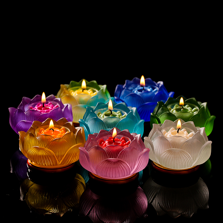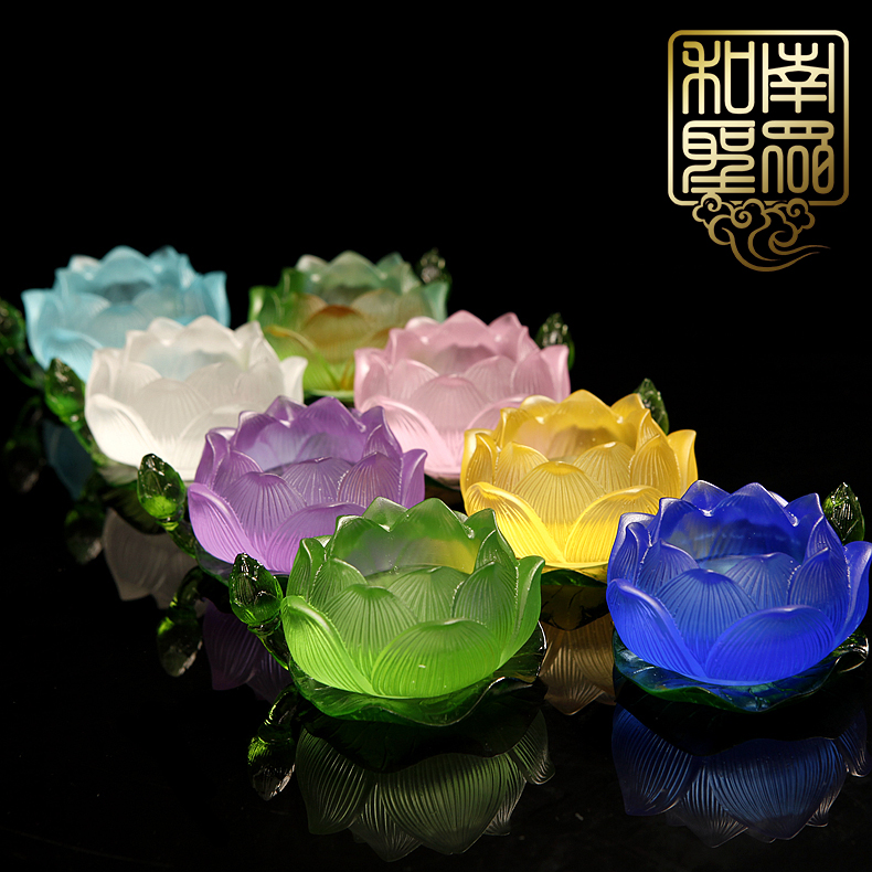 Buddha Hall for Seven Treasure Glazed Oil Lamp Wax Candle Holder Seven Color Lotus Lantern for the Buddha Guanyin Property Divine Lamp Ghee Lamp