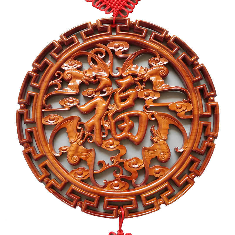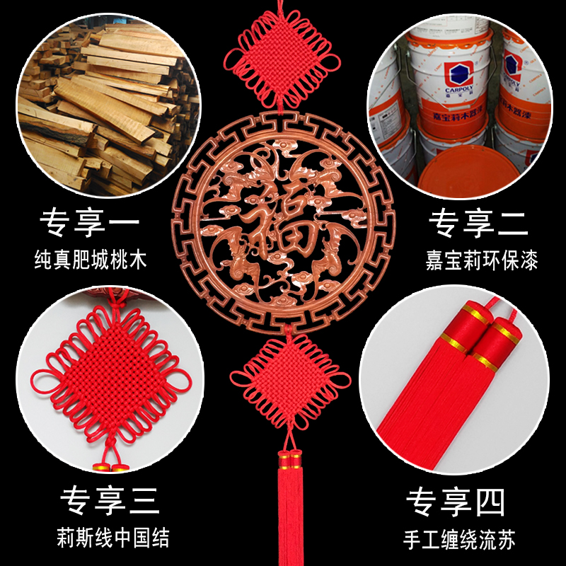 Peach Wood Carving China Knot Great Fu Character Pendant Living Room Xuanguan Bedroom Jo Relocation Gift to the door wall hanging decoration and sending friends