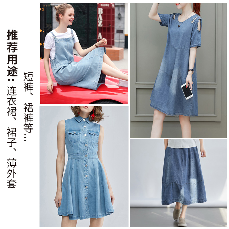 Denim fabric Wash solid color Blue soft thin jacket Jeans denim skirt Pure cotton non-elastic close-fitting clothing fabric