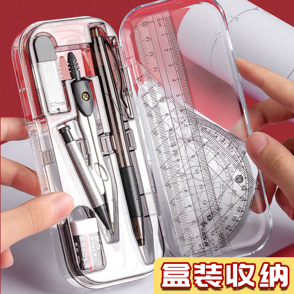 M&G compass students use ruler set multi-functional professional mechanical drawing drawing drawing tools primary school sixth grade junior high school students practical type metal stainless steel clip pen triangle board garden rules