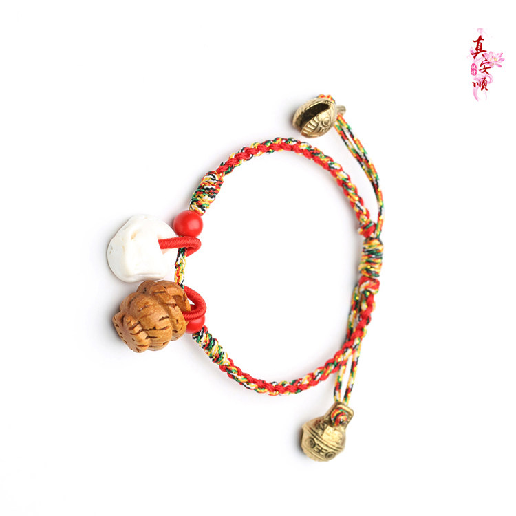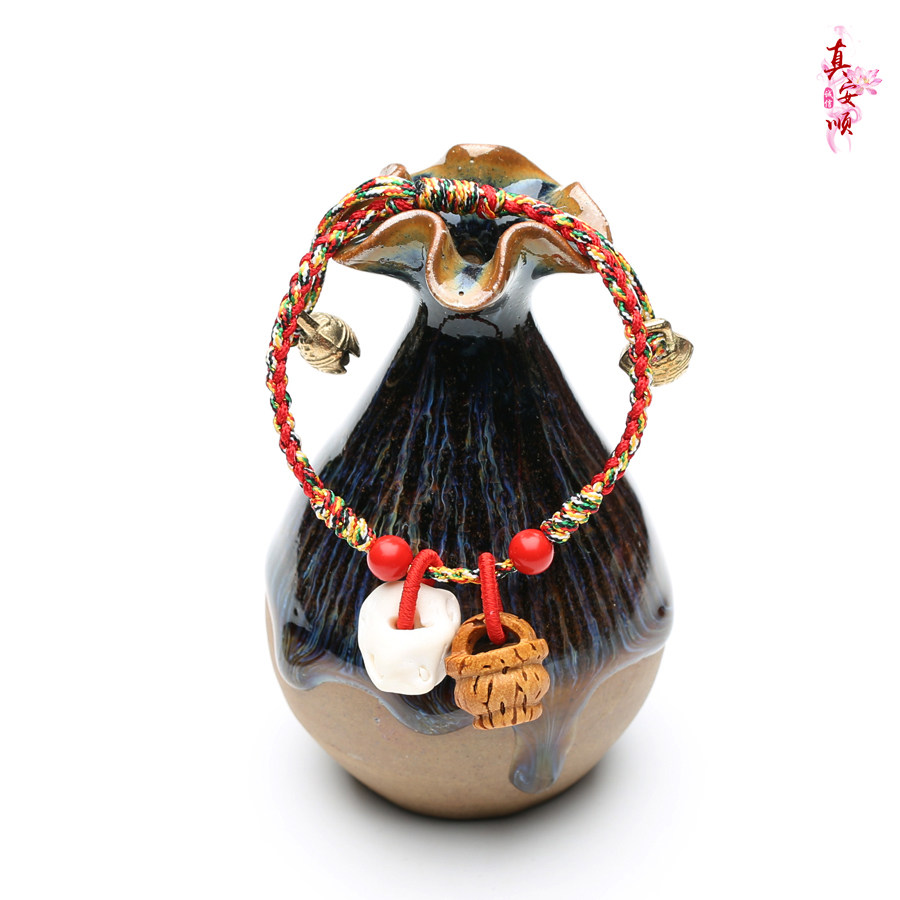 Zhen Anshun baby pressed pig pig fine peach blue knitting red rope handle and colourful foot-chained children