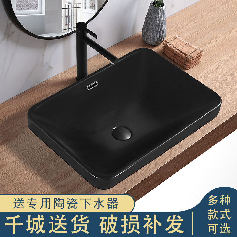 Taichung basin black matte semi-embedded washbasin Nordic fashion home washbasin bathroom vanity rectangular