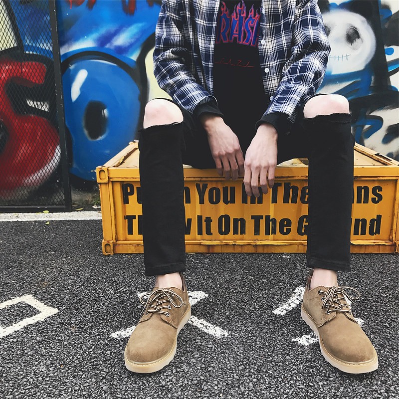 Martin boots men's low top leather casual shoes men's trendy retro leather shoes all-match big toe suede tooling shoes men's shoes