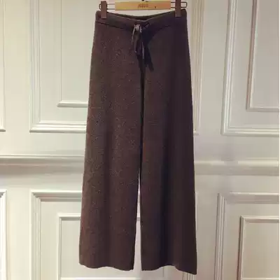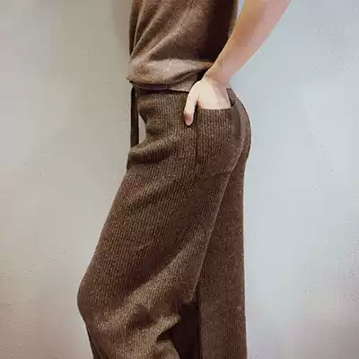 European station cashmere knitted wide leg pants women's casual high waist trousers loose thin elastic waist wear wool pants