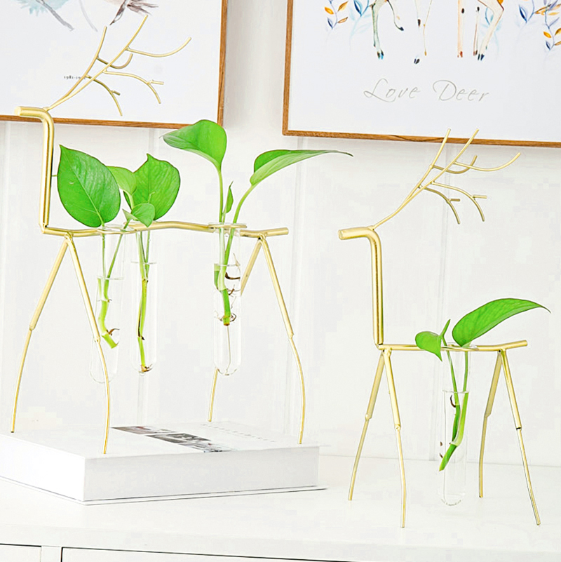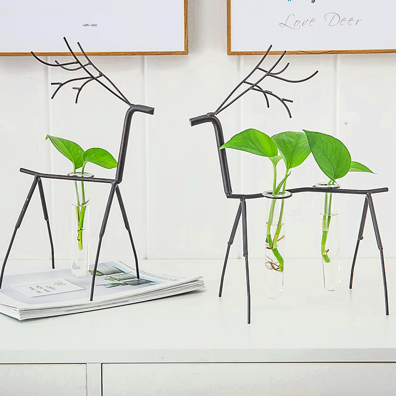 Hydro Iron deer Creative Euro-style glass vase green-water flower transparent water flower office dinner decoration