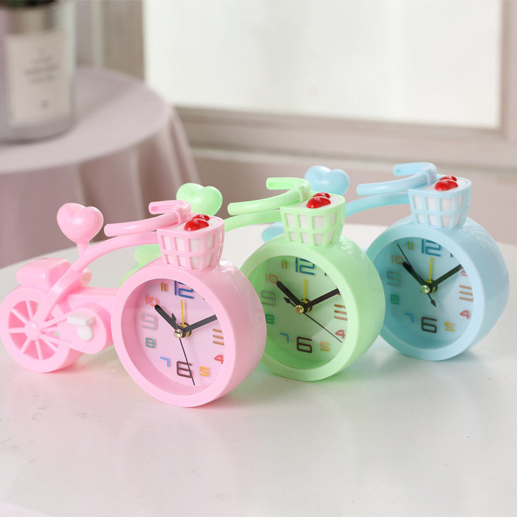 Creative children's small clock cartoon cute gift student gift personalized plastic Chinese love bicycle alarm clock