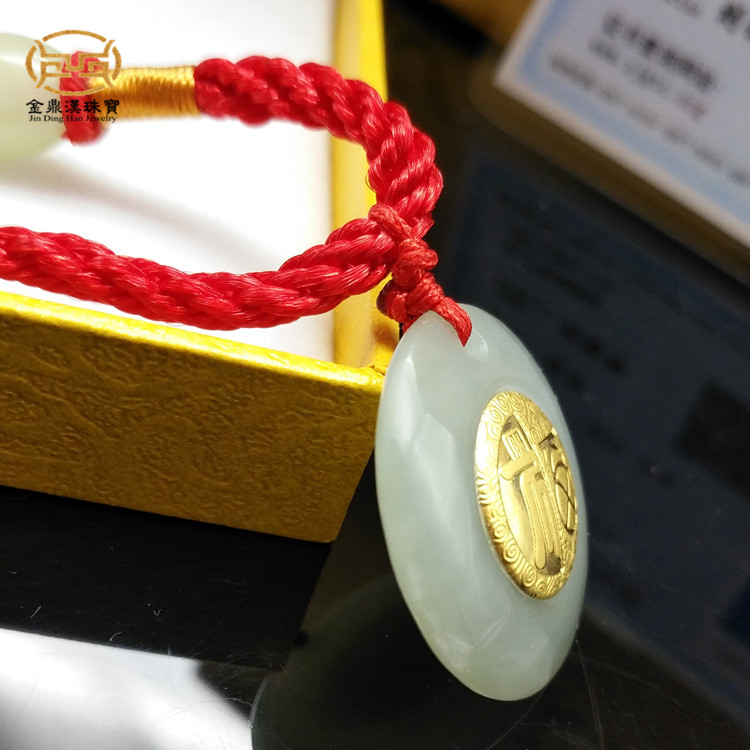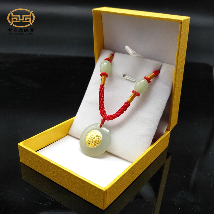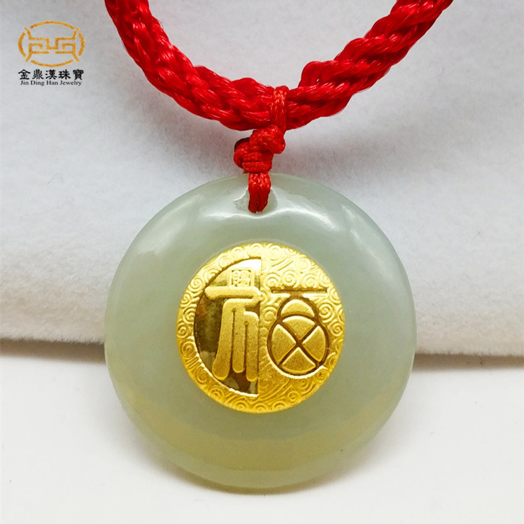 Gold Inlaid Jade Blessed Safety Buckle Pendant and Tian Yuinlaid Golden Fufu Character Necklace Insurance Marketing Gold Shop Promotional Gift