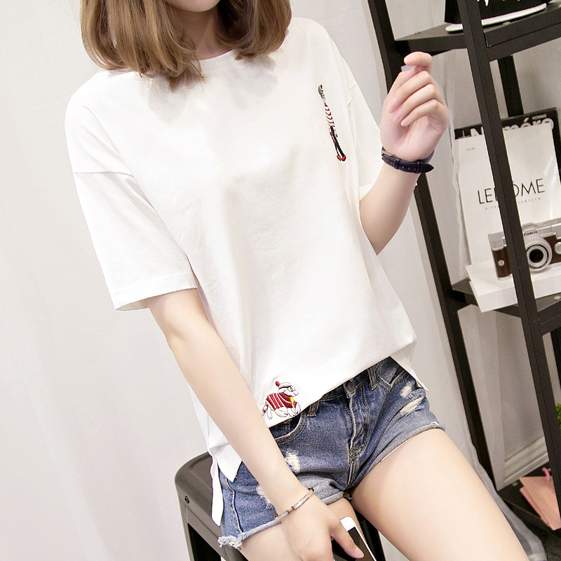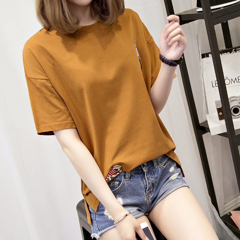 2022 New short sleeve T-shirt female summer loose large size Korean version 100 hitch blouses white tennis red hyperfire ins tide