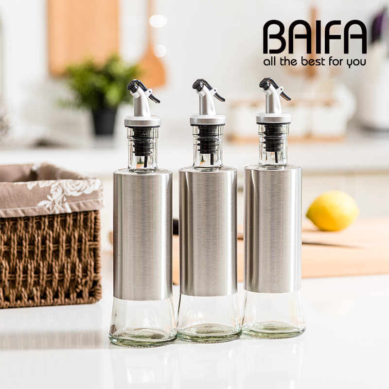 Nordic Creative Kitchen Oil Pot Glass Oil Bottle Anti-Leaking Sauce Bottle Stainless Steel Vinegar Pot Home Soy Sauce Bottle Seasoning Bottle