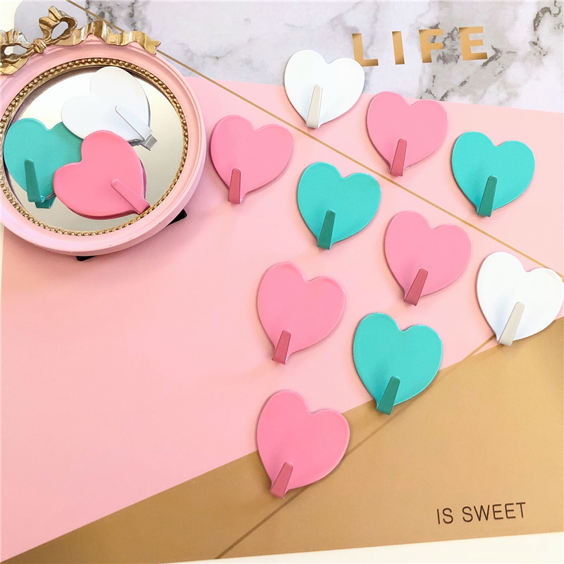 Teenage Girl Hearts Pink Green White Love Slime Hooks stainless steel No marks Creative Hooks Peach Hearts Decorate Hook Photo Wall