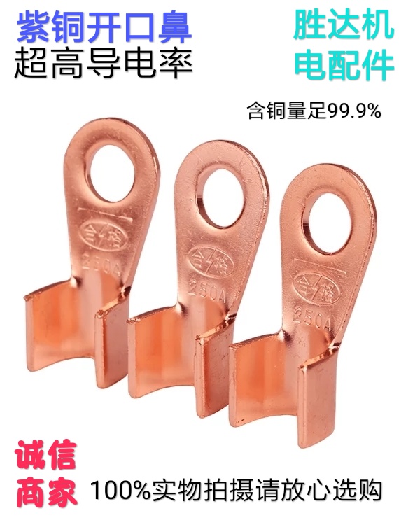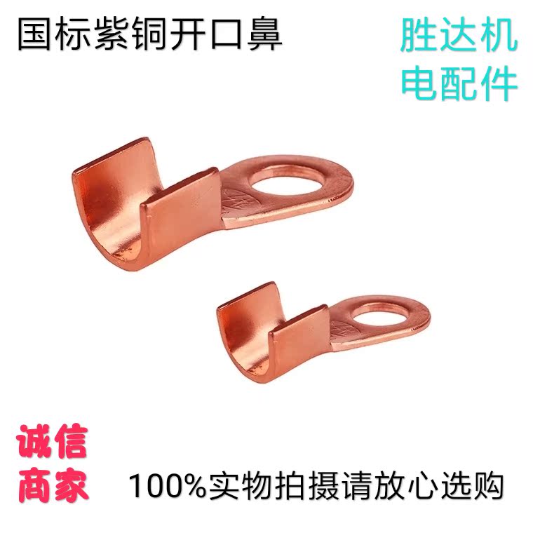 Thickened copper wiring nose copper terminal connector open nose copper wire ear red copper open nose 20 40 60-500A