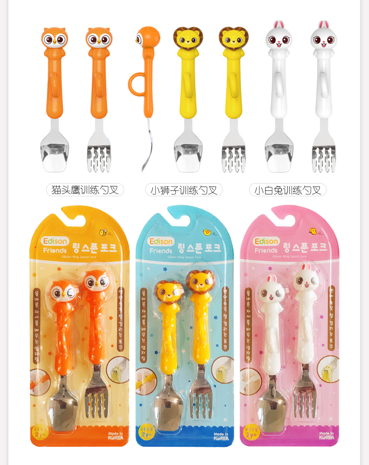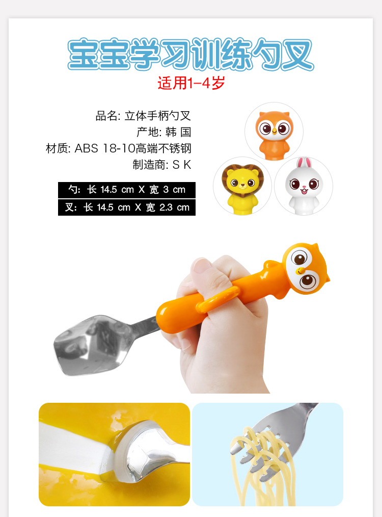 Owl Learn Training Spoon Fork Set 1-4 Years Owl Learn Training Spoon Set 1-4 Years Old Lion Learning Spoon Set 1-4 Years Old Le Stereo Handle Spoon 1-1