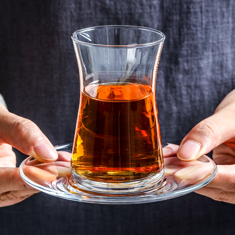 (4-piece set) Turkey imported glass coffee cup black tea cup hot drink cup with plate tea set