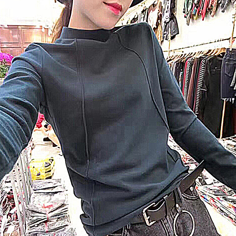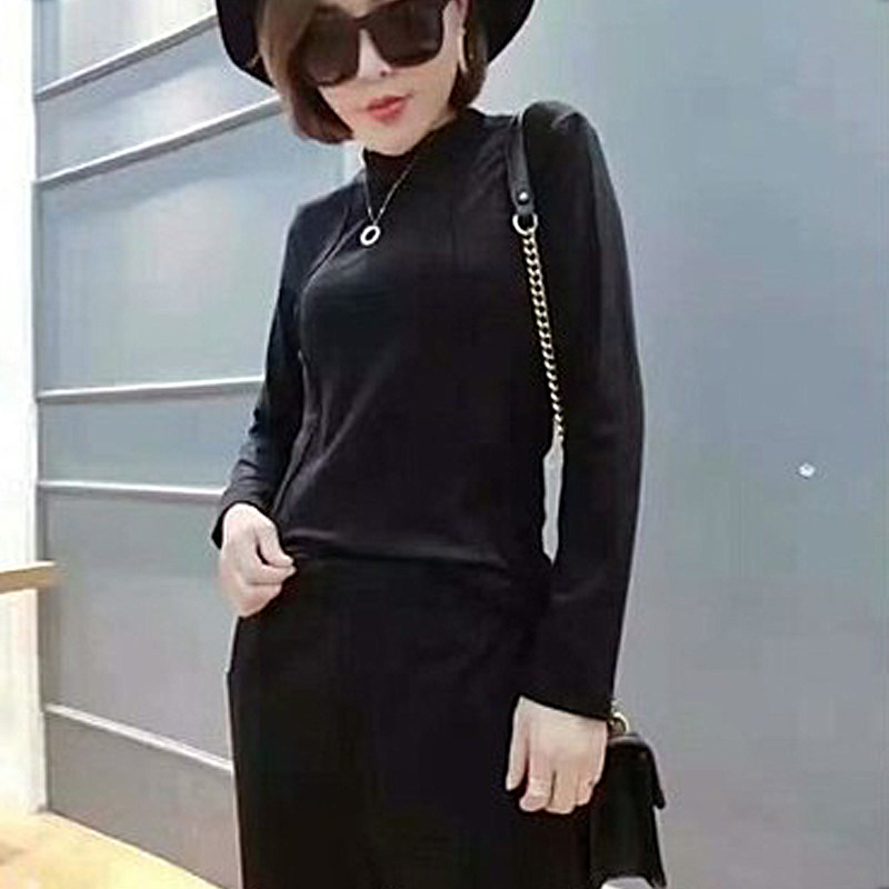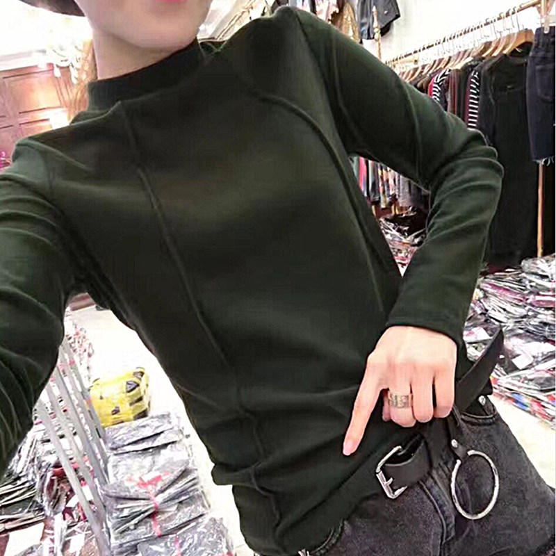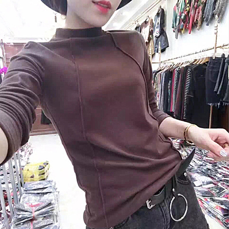 2022 autumn and winter new half-high collar bottoming shirt slim slim long-sleeved t-shirt women's cotton brushed top women's fashion