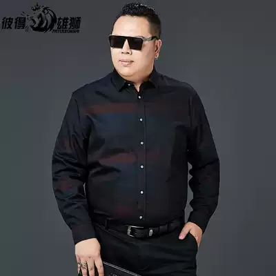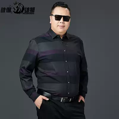 Large size men's shirt business casual fat long sleeve striped cotton plus fat big shirt fat loose shirt