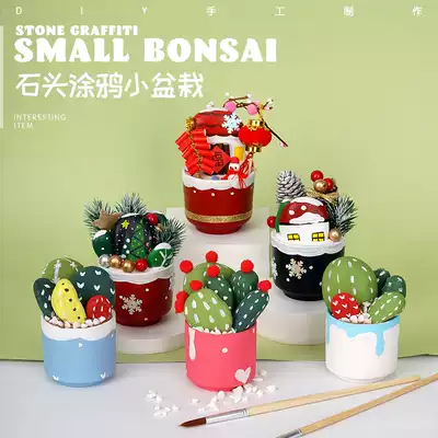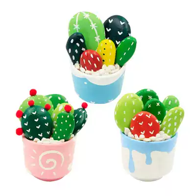 Pompom Cactus Potted Colorful Cactus Potted Summer Fresh Cactus Potted Christmas Forest Stone Potted Snow Night Cottage Stone Potted New Year Courtyard Stone Potted