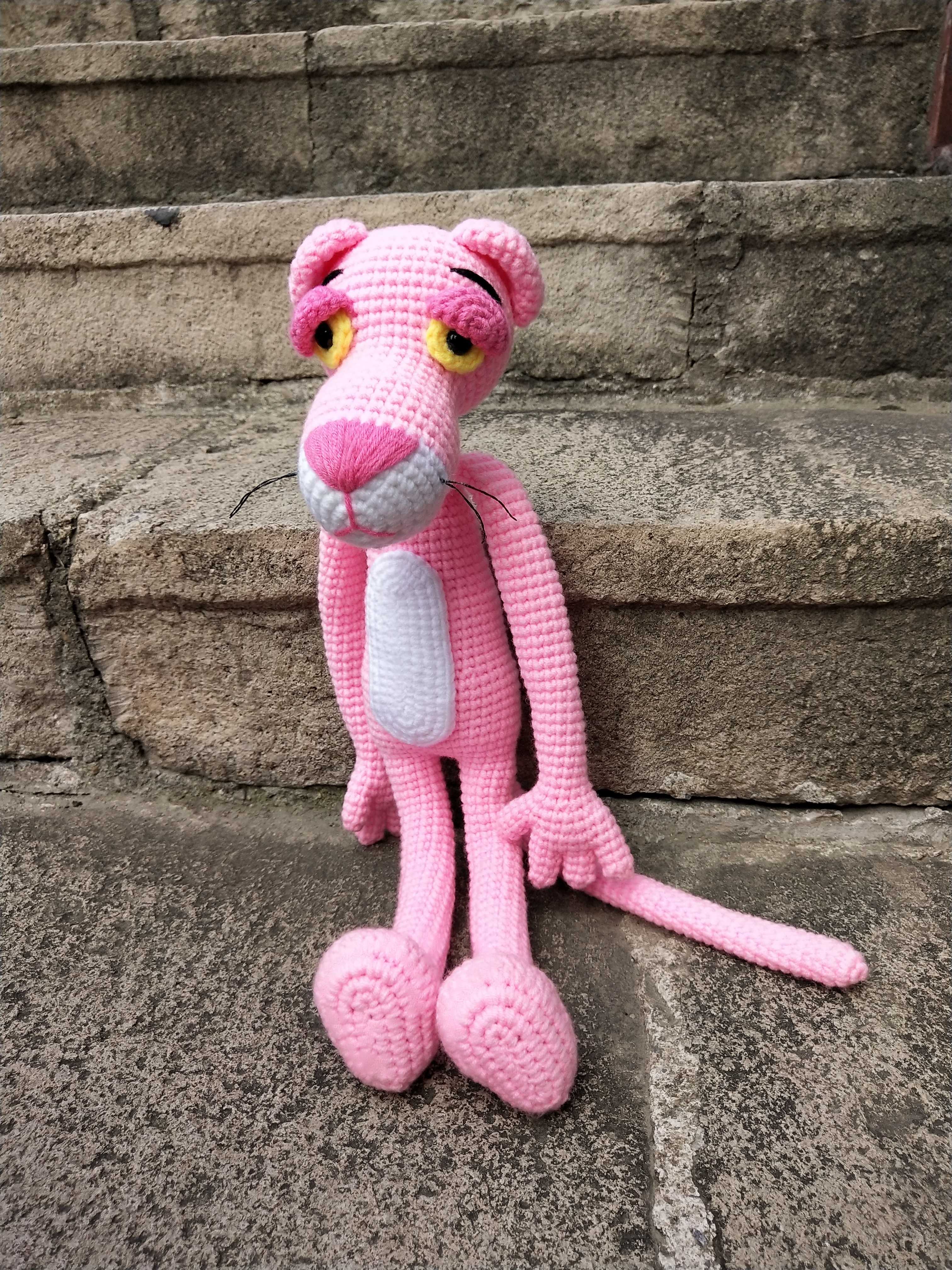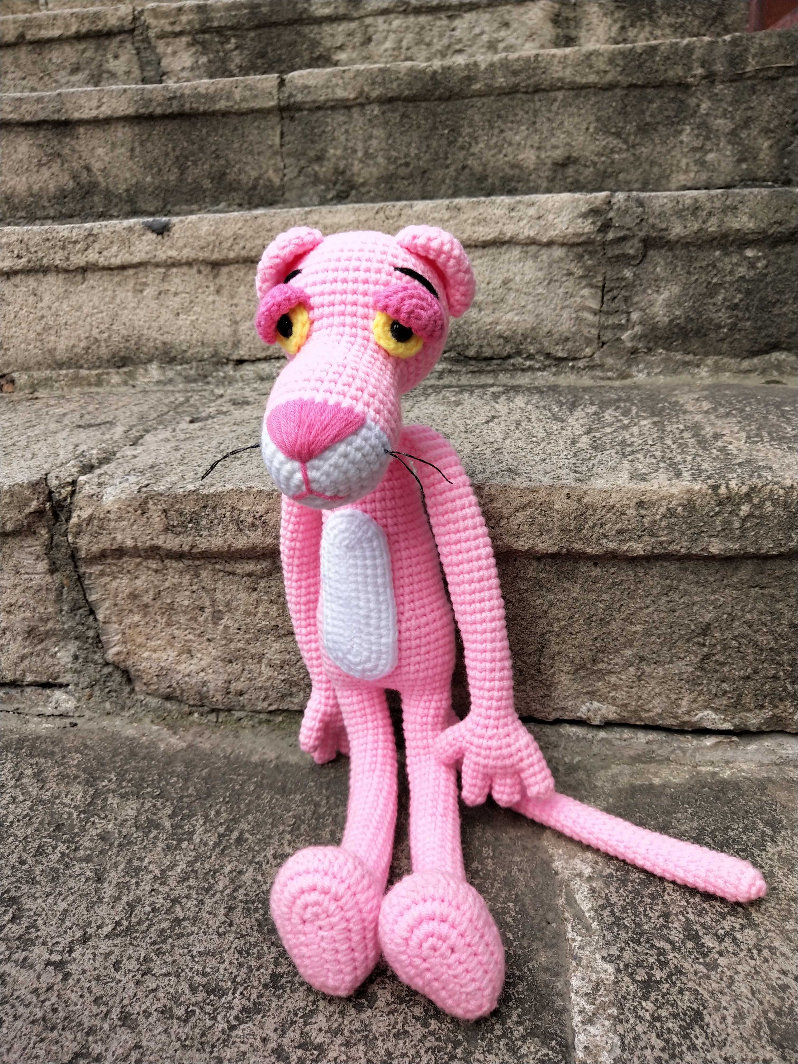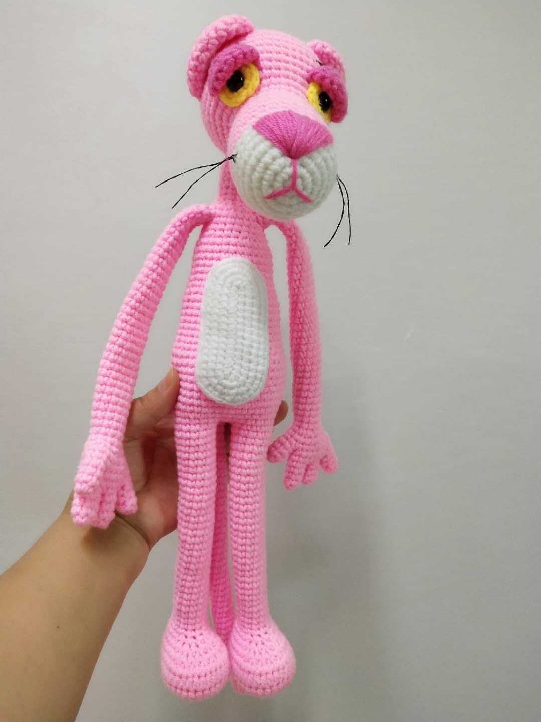 Mango Family Diy Pure Hand Crochet Hook Crochet Powder Red Naughty Leopard Wool wool doll finished product with spot