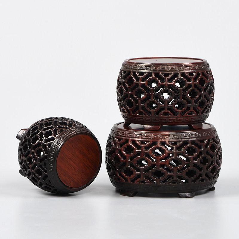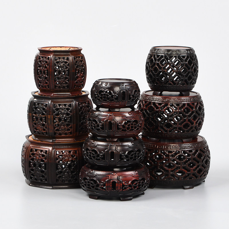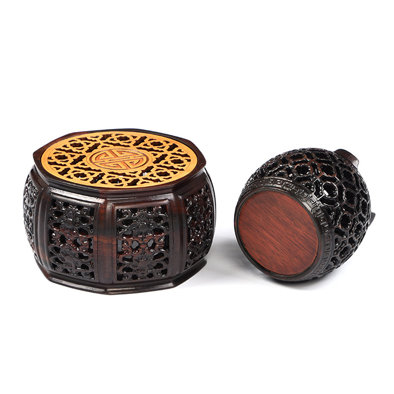 Base solid wood stone vase red wood round pendulum piece Buddha statue Red Acid Branches Lotus Antique Craft Gift Swaying Accessories