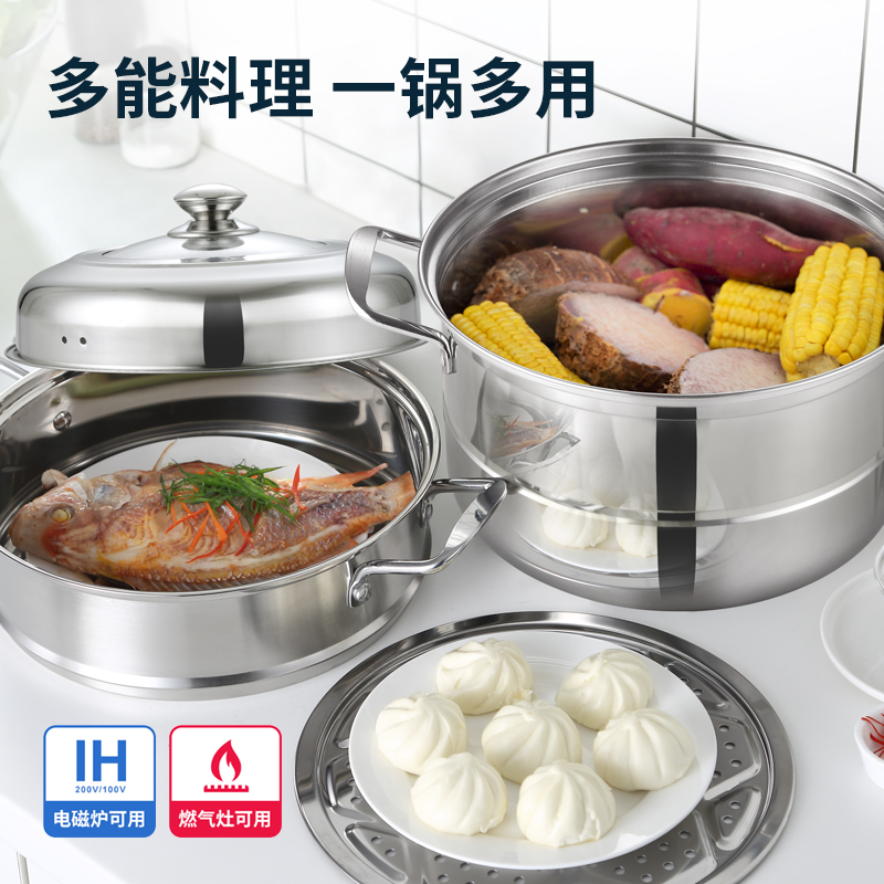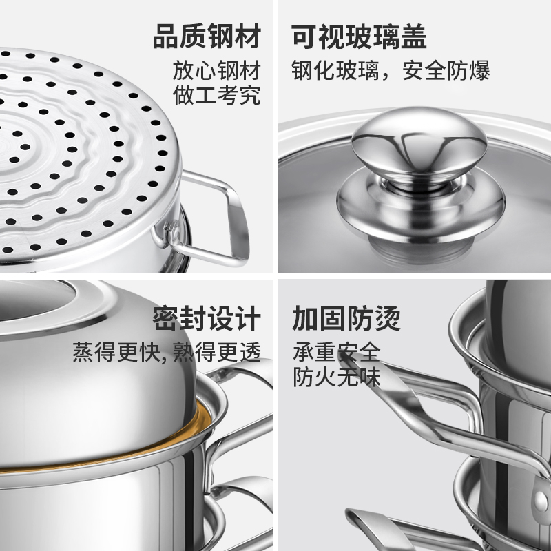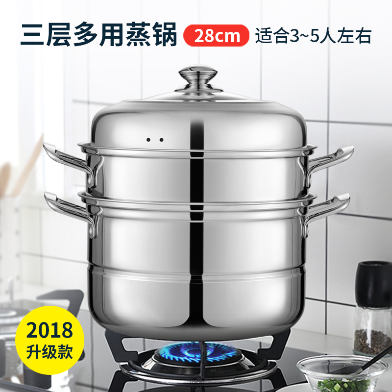 Stainless steel steamer three-layer multi-layer thickened soup pot steamer steamer steamed buns three-layer two-layer induction cooker household