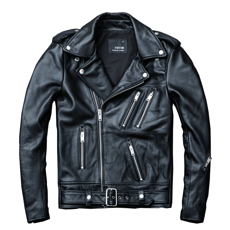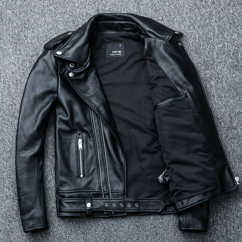 Cowhide motorcycle jacket first layer cowhide leather leather jacket men's locomotive fashion lapel heavy industry locomotive suit tide men's coat