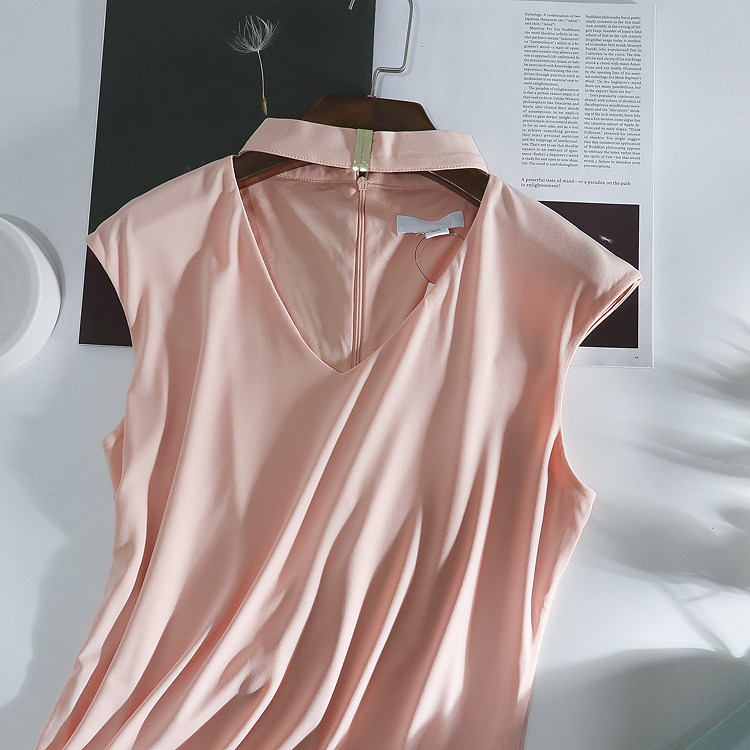 With texture guests for plated hardware carefully designed exquisite V collar pure color minimalist girl's undershirt T-shirt