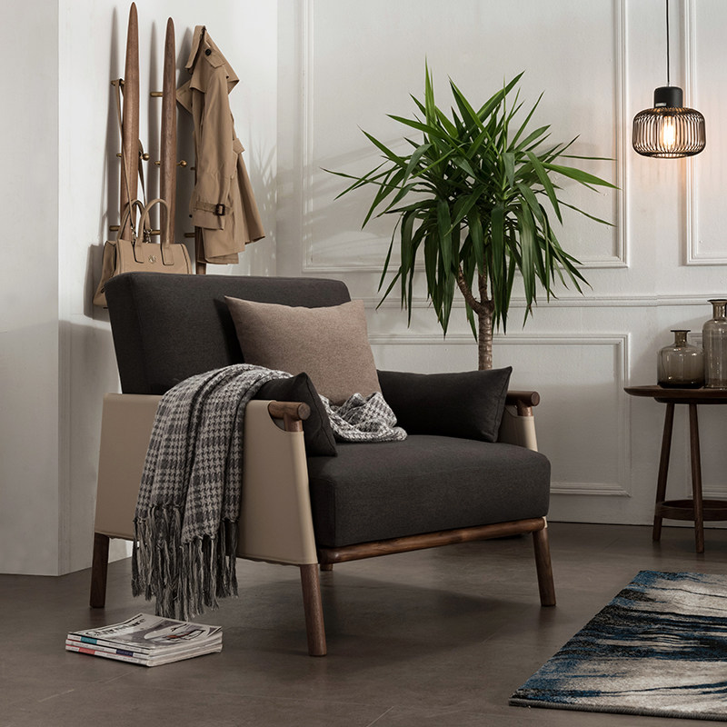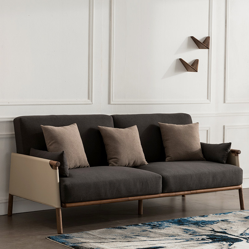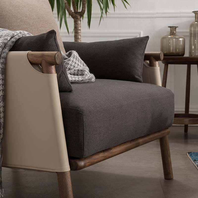 Black walnut sofa combination all solid wood single modern minimalist Nordic small apartment whole down living room furniture