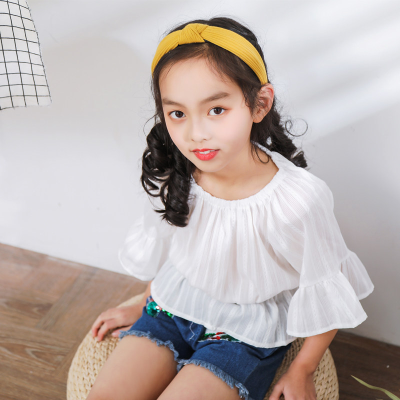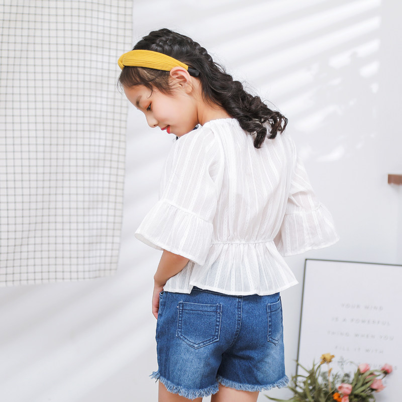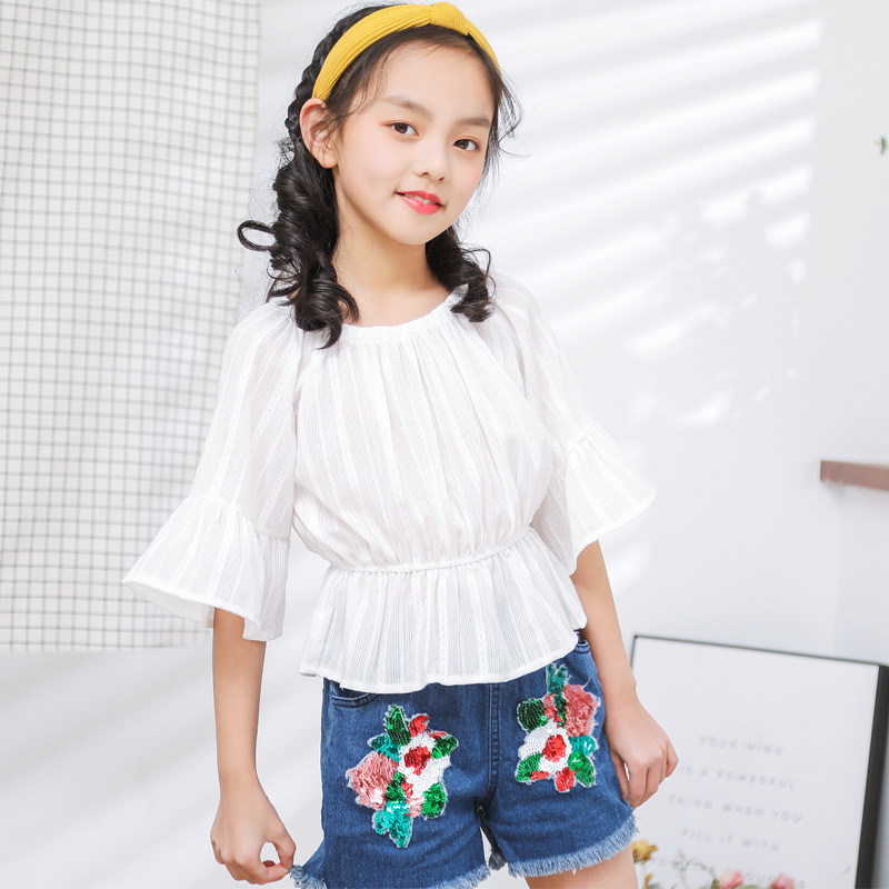 Aile rabbit summer dress 2019 new fashionable Korean version of the big child word shoulder shorts Foreign school girl two-piece suit tide