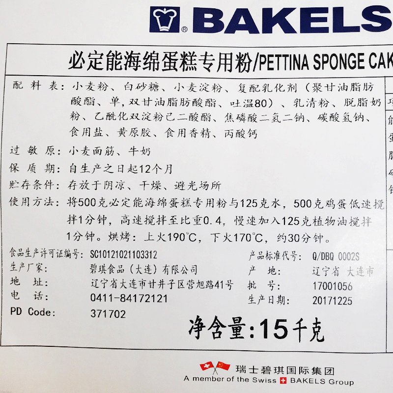 BAKELS Bikie Sponge Cake Premixed Powder 15kg Cake Blank Sponge Cake Baked ingredients with low-gluten flour