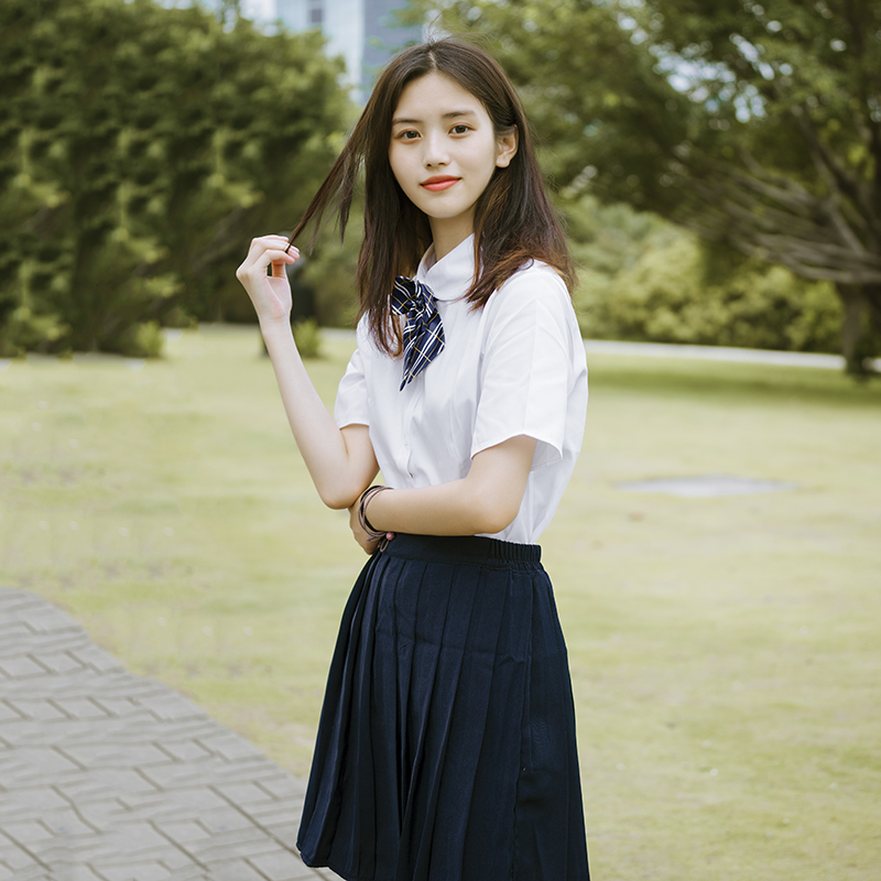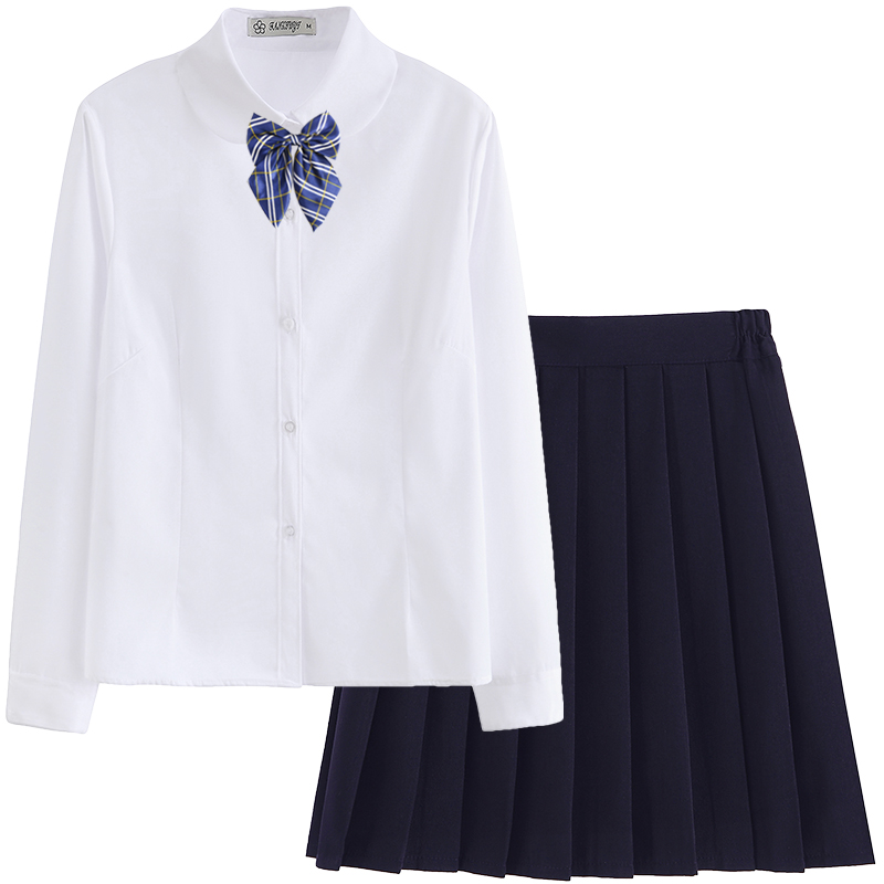 Girls round neck short-sleeved shirts, bow tie girls round neck long-sleeved shirts, bow tie girls short-sleeved shirts, navy blue short skirts, bow tie girls short-sleeved shirts, navy blue middle skirts, bow tie girls short-sleeved shirts, hid