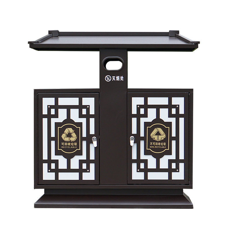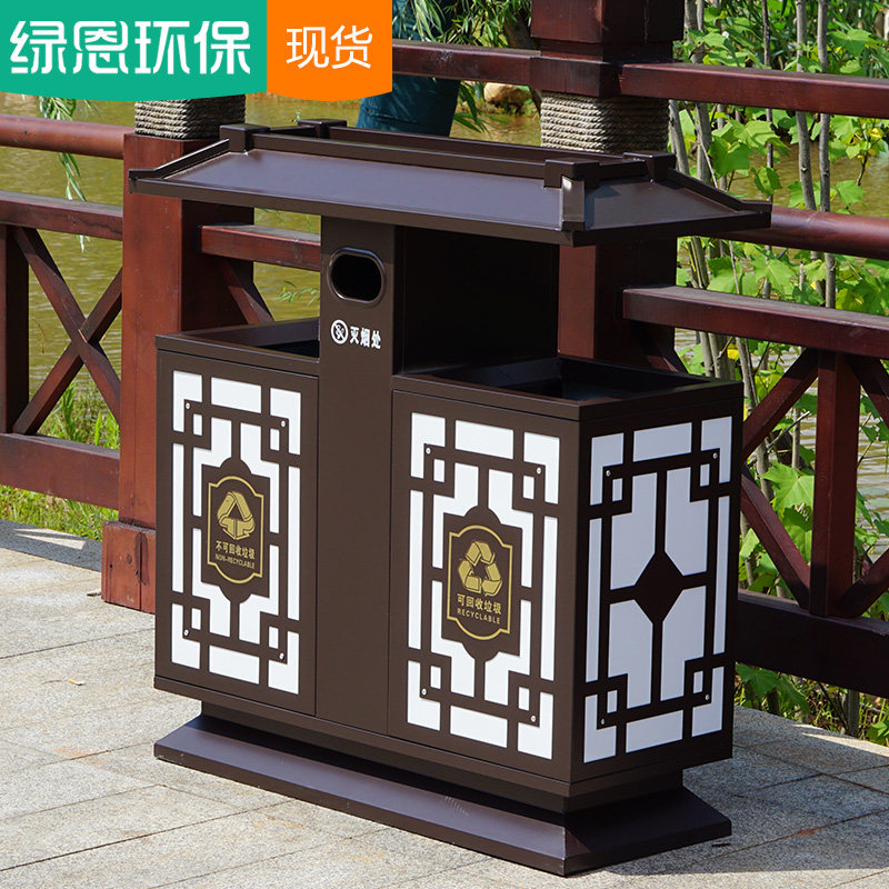 New Chinese-style outdoor trash can stainless steel antique town creative scenic park area three three four classification peel box