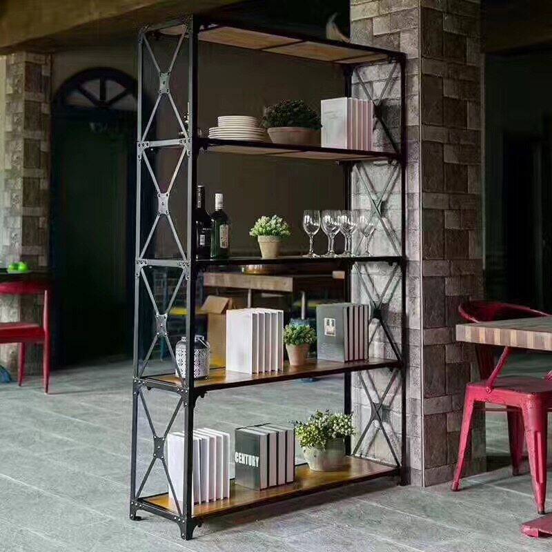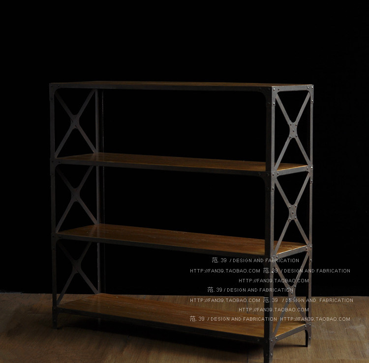 Loft American kitchen rack wrought iron rack solid wood retro bookshelf floor bookcase display rack living room display rack
