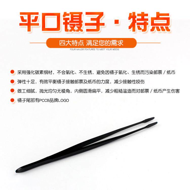 PCCB flat without hurting stamp notes special tweezers 15cm coin protects the stamp black carbon steel clip